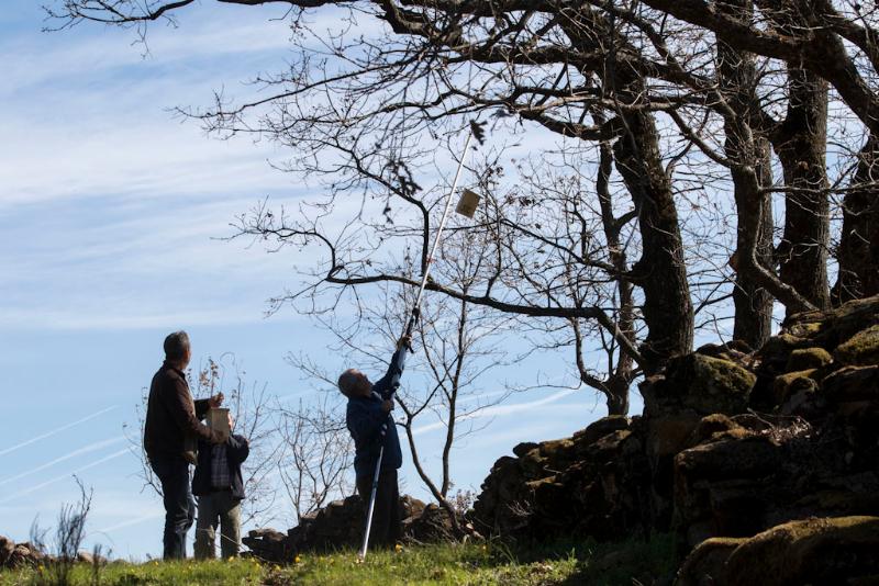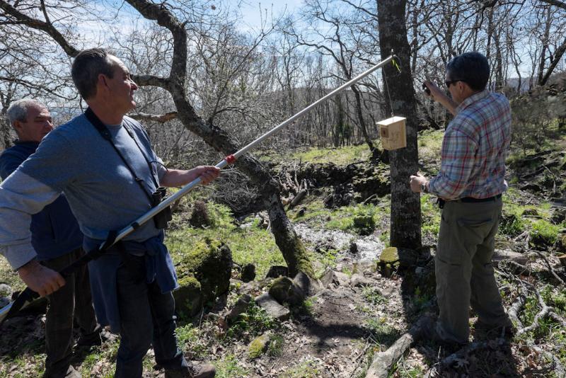 El sábado 12 de marzo se ha procedido, por parte de varios miembros de la Fundació Mediambiental, a la instalación de las primeras 45 cajas-nido para aves insectívoras, más 3 cajas-refugio para murciélagos en el robledal que entorna el regato de la Barquera en Las Siete Fuentes tal como se describe en el díptico de presentación del proyecto.