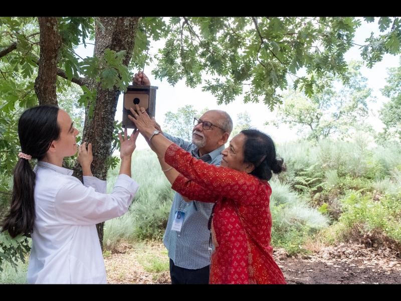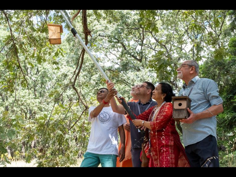 Asimismo, se realizaron otros actos durante el Día Mundial del Medioambiente con los miembros del Hindu Forum of Europe, como la instalación de unas cajas nido para la gran variedad de aves que habitan la zona, así como un recorrido por el huerto ecológico e instalaciones de tratamiento de aguas y residuos del Campus PHI.