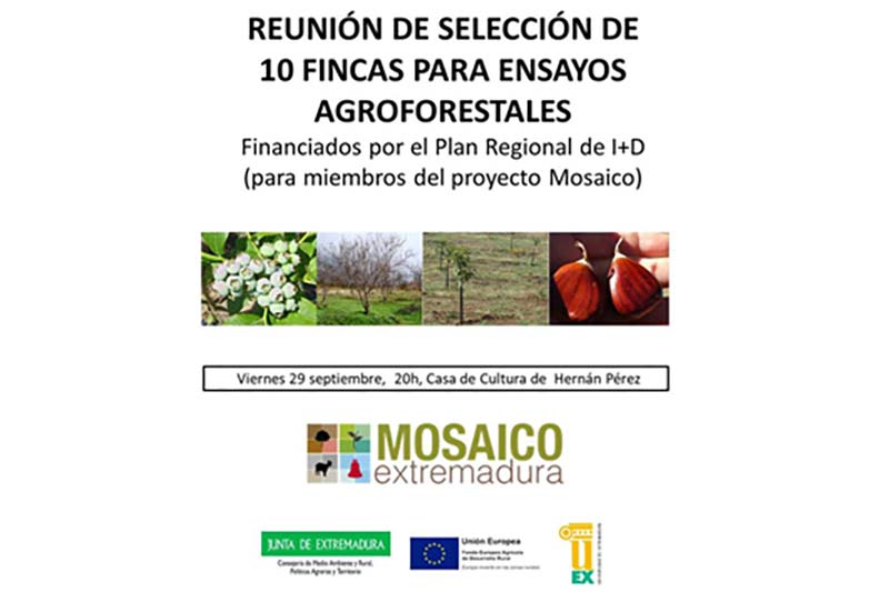 El pasado viernes día 29 de septiembre, José Pablo Gadea, en nombre de Fundación Phi, acudió a una reunión para los miembros del proyecto Mosaico. En ella se informó de un programa financiado por el Plan Regional de I+D y coordinado por la Universidad, para financiar 10 proyectos piloto agroforestales, dentro del territorio del Mosaico.